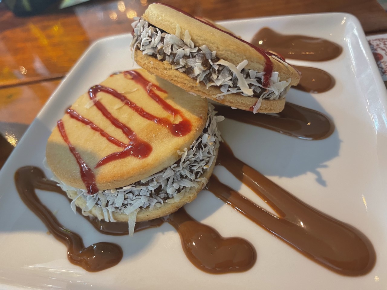 Two vanilla cookies with dulce de leche and shredded coconut. As you can see, I’m enjoying myself.
