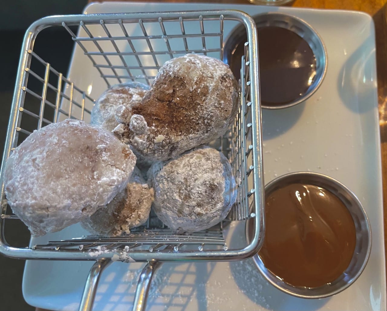 Next up, donuts. They are house-made ricotta doughnuts with espresso hazelnut and dulce de leche to dip. So many sweets for breakfast, I know. But it’s Miami and I’m on vacation!